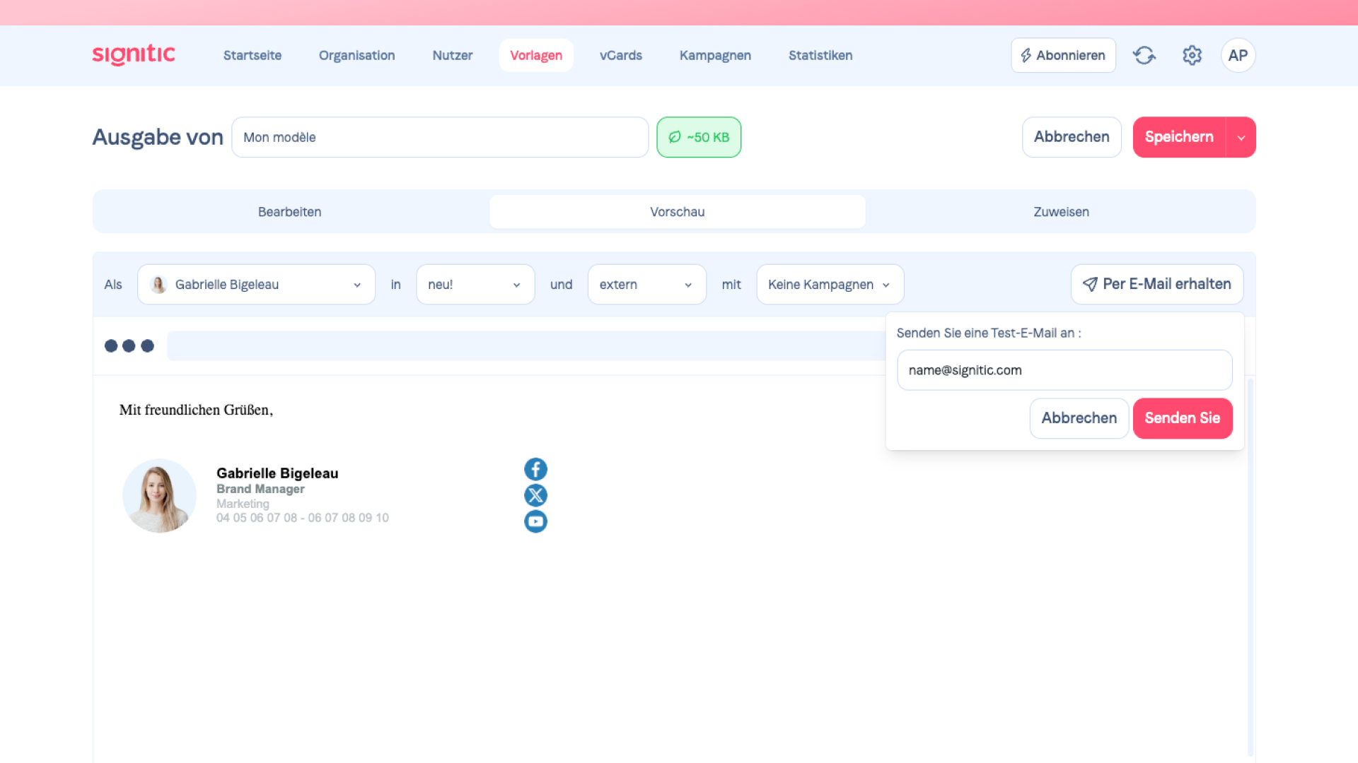 Testen Sie mehrere Varianten Ihrer Kampagnen und Signaturen, um herauszufinden, welche das meiste Engagement generieren.