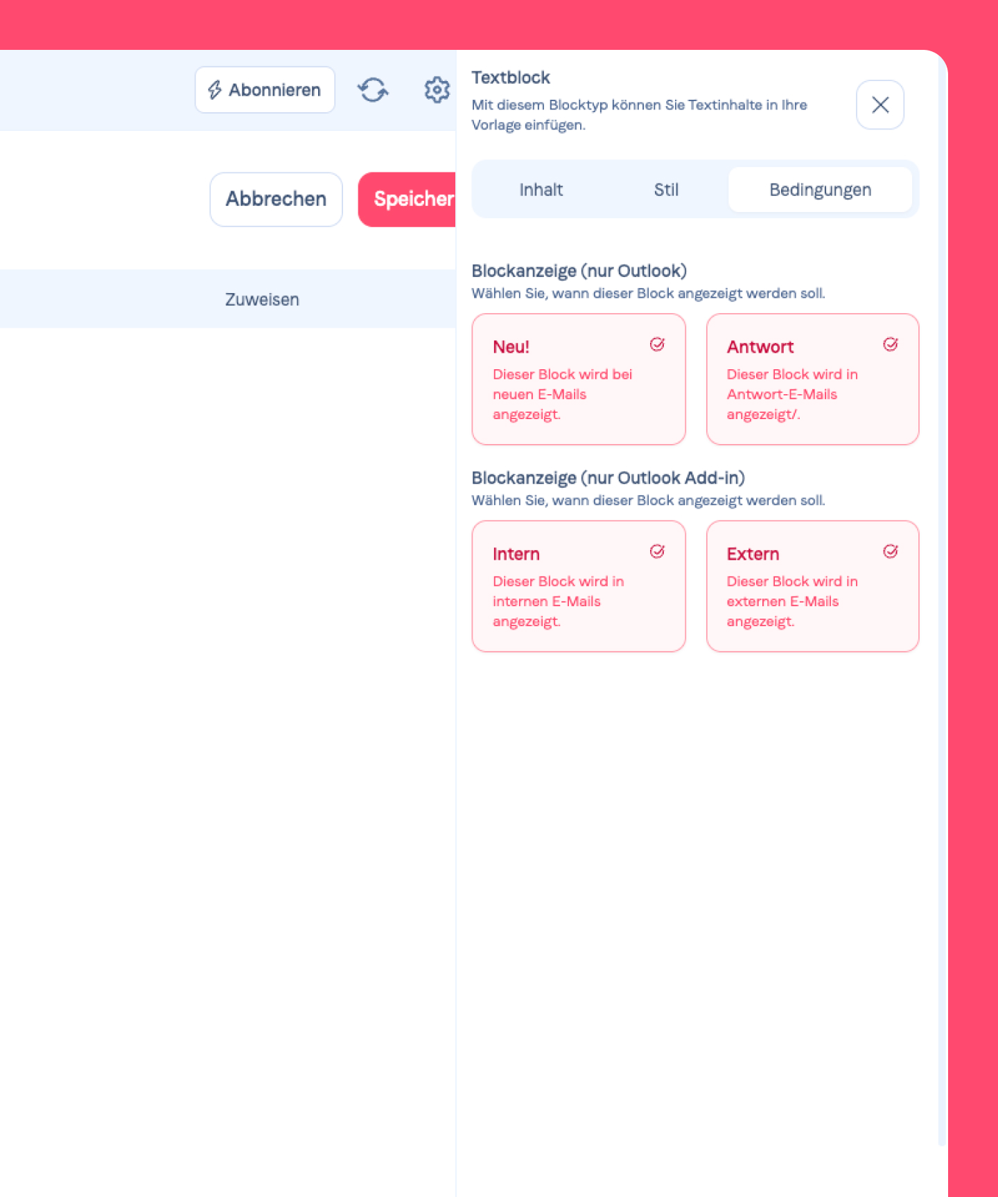 Automatisieren Sie die Anzeige Ihrer Signaturen entsprechend Ihren Empfängern. Garantieren Sie auf diese Weise ein starkes Markenimage für Ihre Kunden und eine gezielte Kommunikation für Ihre internen Teams.