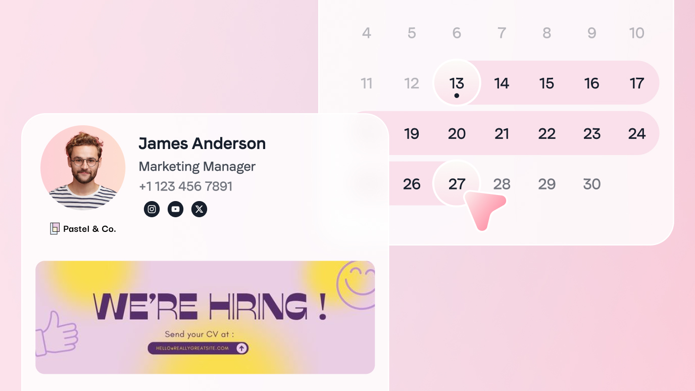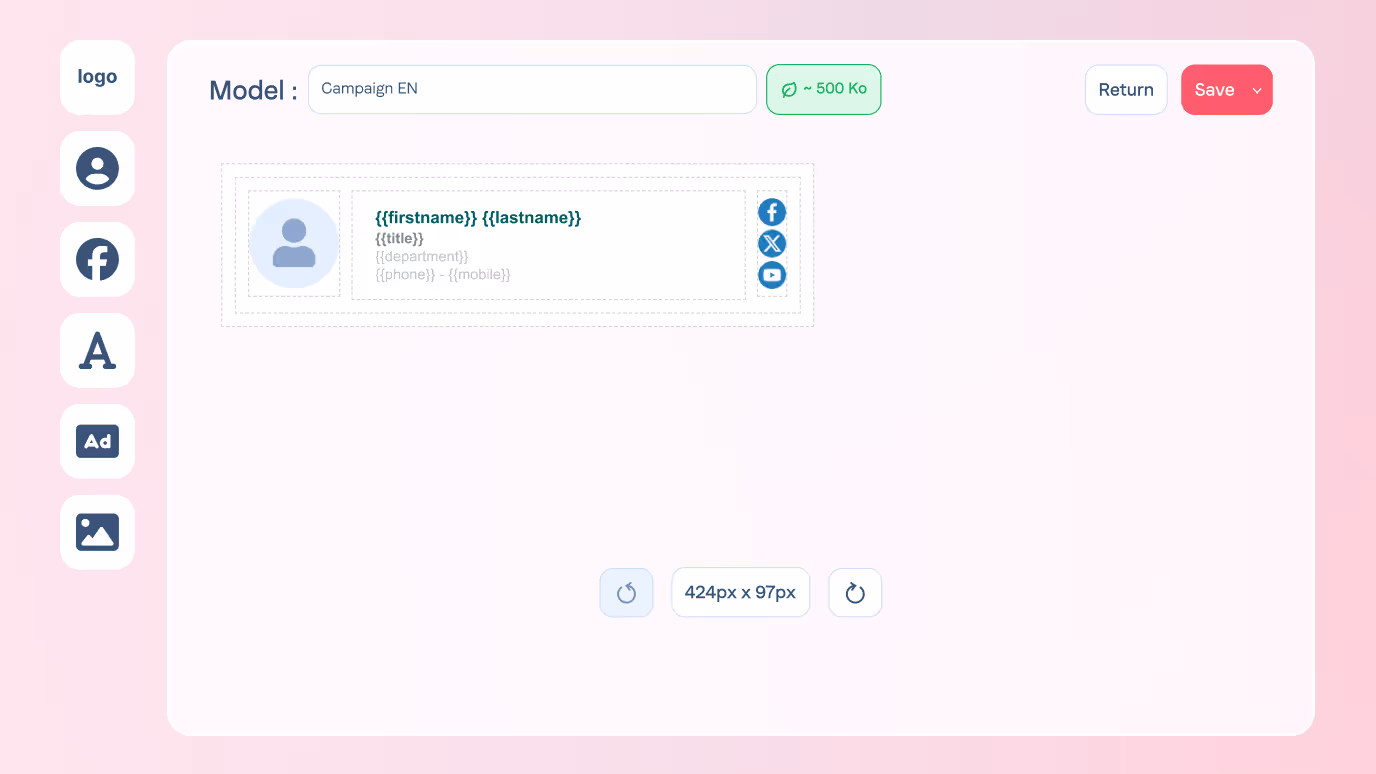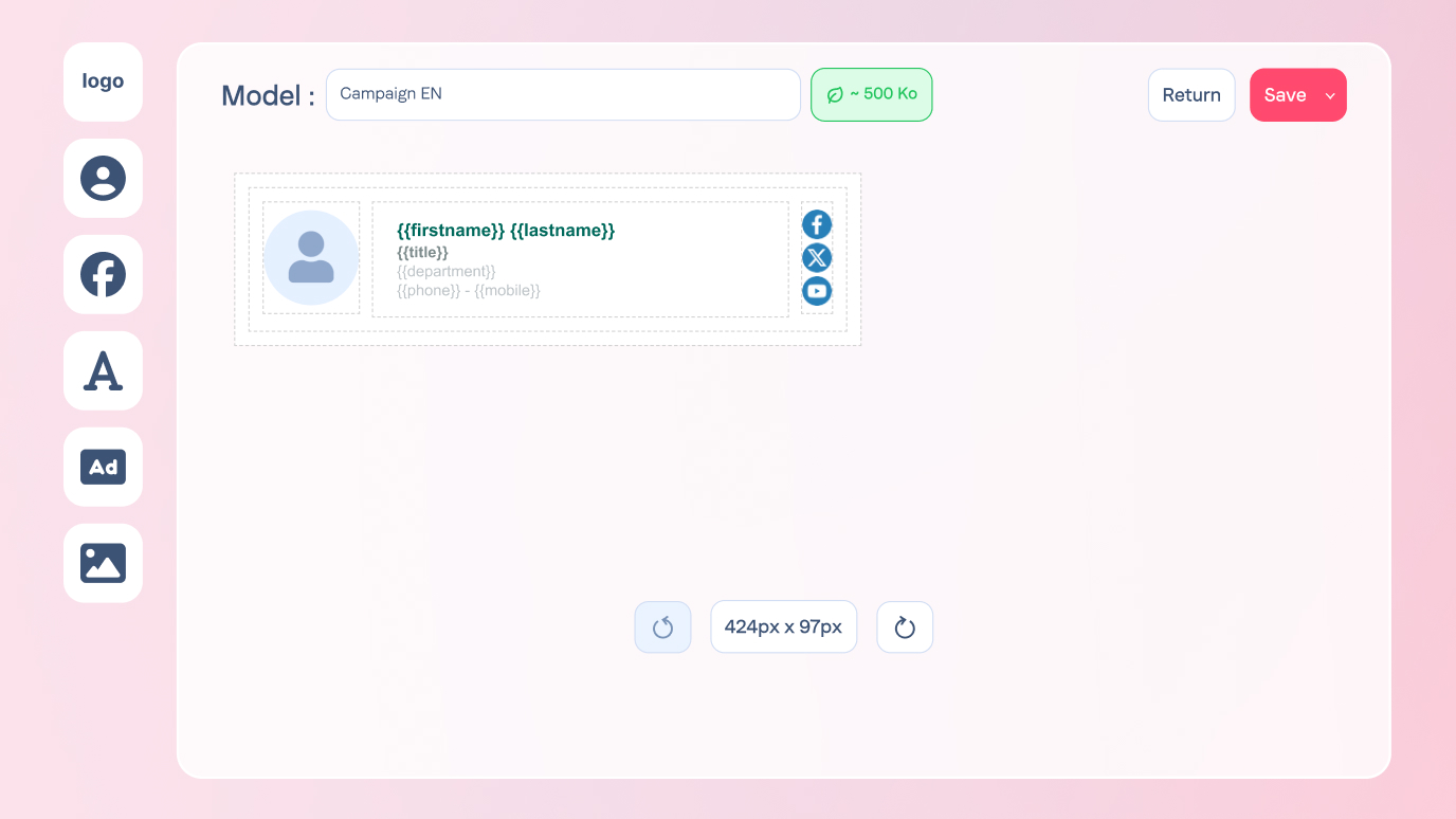 Thanks to our drag & drop editor, design powerful and personalized signatures. Add logos, links or social networks to ensure a perfect coherence of your image, right up to the signature.