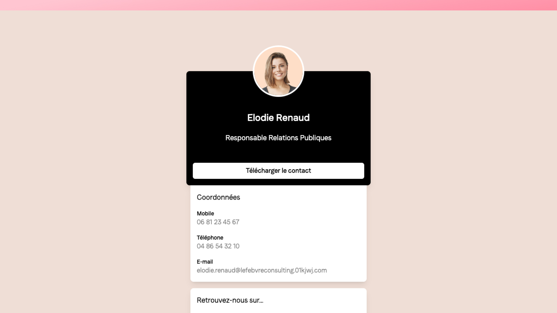 Chaque carte dispose d'un lien dédié, prêt à être envoyé par email ou partagé après un rendez-vous./