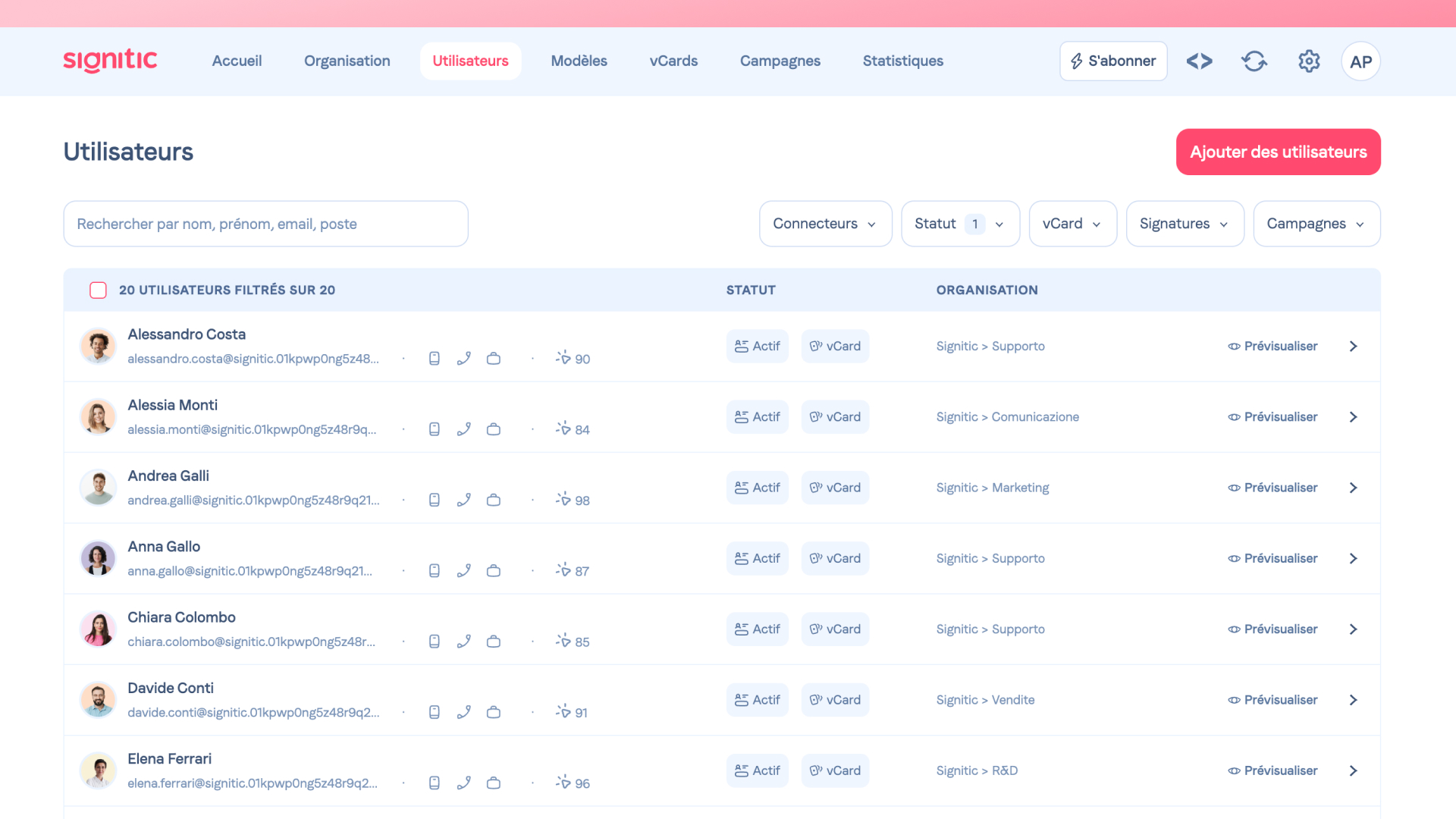 Signitic est conçu pour reproduire la complexité des grandes organisations : entités juridiques distinctes, filiales, business units, marques parallèles, implantations par pays. Chaque entité bénéficie de ses propres règles de signature (charte graphique, couleurs, logo, liens, mentions légales) tout en étant gérée depuis une interface unique. Les administrateurs peuvent définir des droits et des paramètres spécifiques à chaque niveau de l'arborescence, ce qui permet une gouvernance précise sans multiplier les outils ou les interfaces.