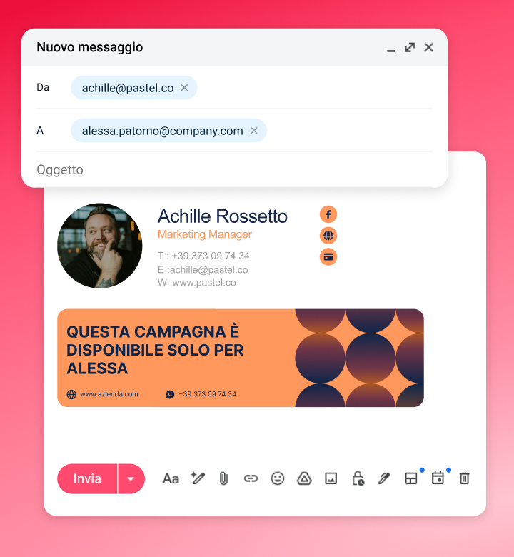 Adatta automaticamente la firma e la campagna in base all'indirizzo email utilizzato, in modo che ogni messaggio corrisponda al contesto di invio.